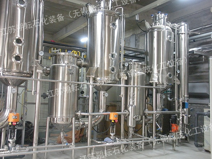 新型三效蒸發(fā)器(濃縮)適用于谷氨酸、檸檬酸、葡萄糖、氨基酸酵、木糖、食品、化工和制藥行業(yè)料液的蒸發(fā)濃縮。蒸氣耗量低,蒸發(fā)溫度低,濃縮比大,收的率高,濃縮時間短。
